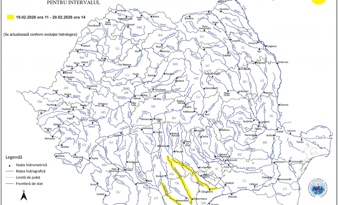 Atenționarea este valabilă în intervalul 19.02.2026 ora 11:00 – 20.02.2026 ora 14:00.